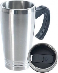 Praktikus rozsdamentes termosz bögre füllel, 450 ml űrtartalommal, amely italát sokáig melegen vagy hidegen tartja. A duplafalú vákuum szigetelésnek és a szivárgásmentes tetőnek köszönhetően ideális utazáshoz, munkába és otthonra. A legtöbb autós pohártartóba illeszkedik, a kényelmes, ergonomikus fül pedig biztos fogást ad.