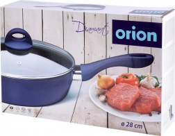 Prémium, magas falú, 28 cm átmérőjű serpenyő üvegfedővel, PFOA- és PTFE-mentes gyémánt erősítésű tapadásmentes felülettel, gyors és egyenletes hőelosztással, energiatakarékos főzéssel és indukciós kompatibilitással. Az ergonomikus nyél nem melegszik fel, a serpenyő mosogatógépben is mosható.