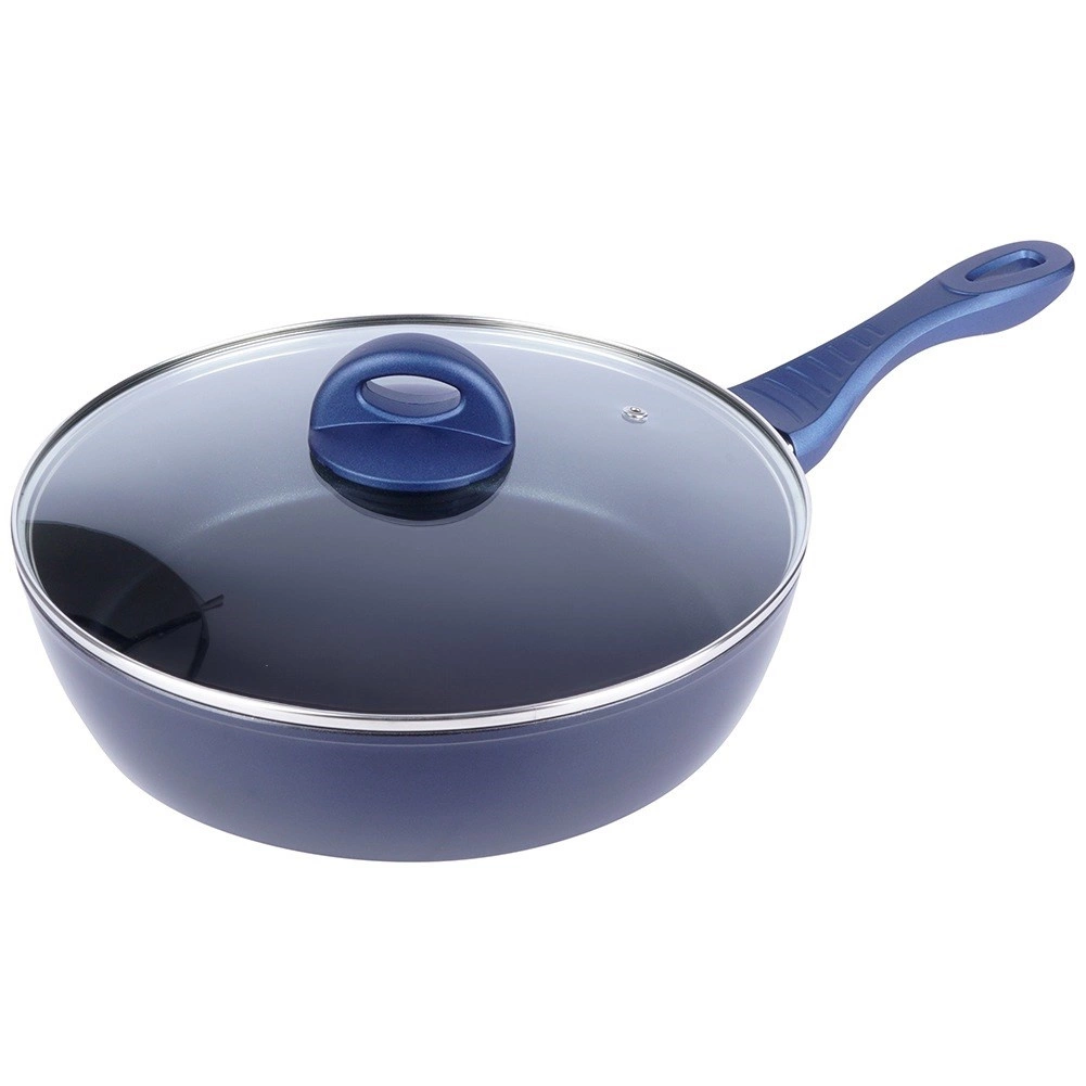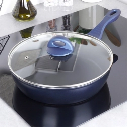 Ez a masszív, öntött alumíniumból készült serpenyő gyémánttal erősített tapadásmentes felületével kiváló hővezetést és tartósságot nyújt még gyakori használat mellett is. Magas peremének köszönhetően ideális sütéshez, pirításhoz és pároláshoz, az üvegfedő gőzszeleppel pedig teljes kontrollt biztosít a főzés felett.