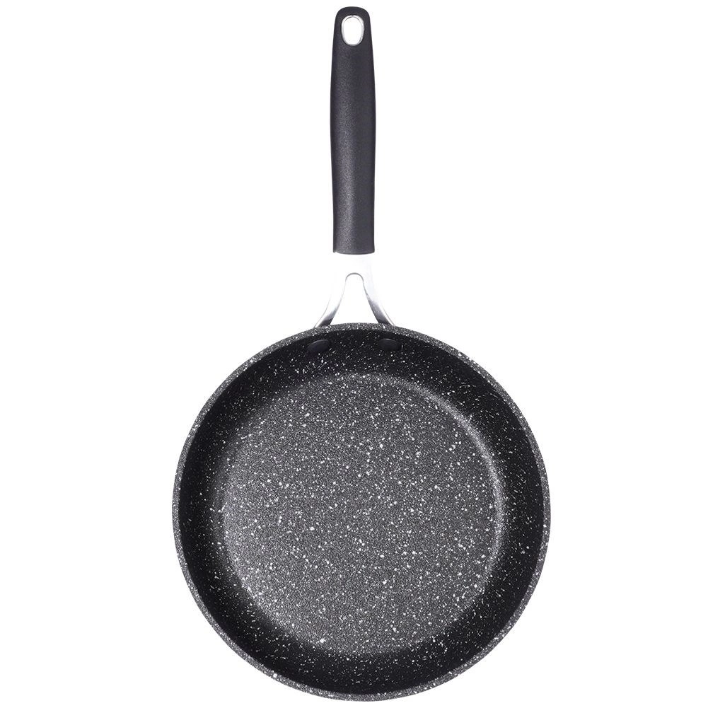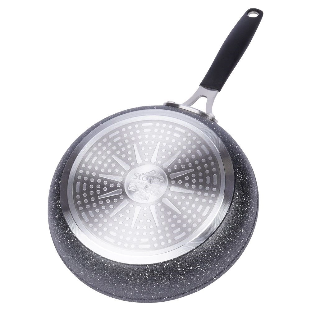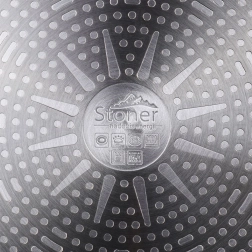 A STONER gránit serpenyő öntött alumíniumból masszív, tartós, és készen áll a mindennapos használatra. A minőségi tapadásmentes bevonatnak köszönhetően egészséges, ízletes ételeket készíthet minimális olajjal – leégés nélkül, tökéletes ételkioldással.