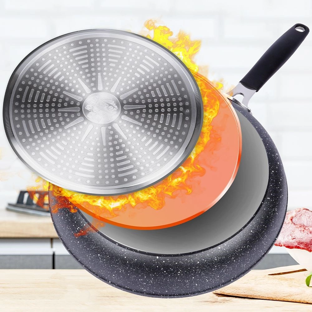 A speciális gránit tapadásmentes réteg gondoskodik róla, hogy az ételek ne égjenek le, és a serpenyő nagyon könnyen tisztítható – elég áttörölni vagy betenni a mosogatógépbe.