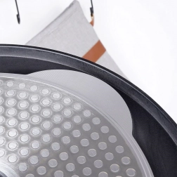 A tartós alumínium test többrétegű aljjal energiahatékony – a hőveszteség minimális, az ételek pedig gyorsabban elkészülnek. A serpenyő gáz-, elektromos-, üvegkerámia- és indukciós főzőlapokon is használható. Az ergonomikus, strapabíró műanyag nyél nem melegszik fel, és biztonságos fogást nyújt hosszabb főzés során is.