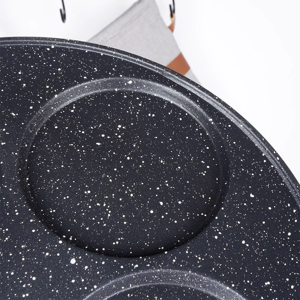 Ez az univerzális serpenyő 4 kör alakú formával ideális tükörtojás, mini palacsinta, krumplilángos vagy kis amerikai palacsinták készítéséhez. A Pfluon Granite tapadásmentes, kőhatású felület megakadályozza az odaégést, és lehetővé teszi a sütést minimális zsiradékkal. Az egyenletes hőeloszlásnak köszönhetően mindig azonos, szépen átsült adagokat kap.