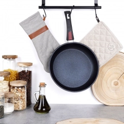 Kényelmes fogás, biztonságos kezelés és sütőben való használat 220 °C-ig. A nyél egyetlen kattintással egyszerűen levehető.