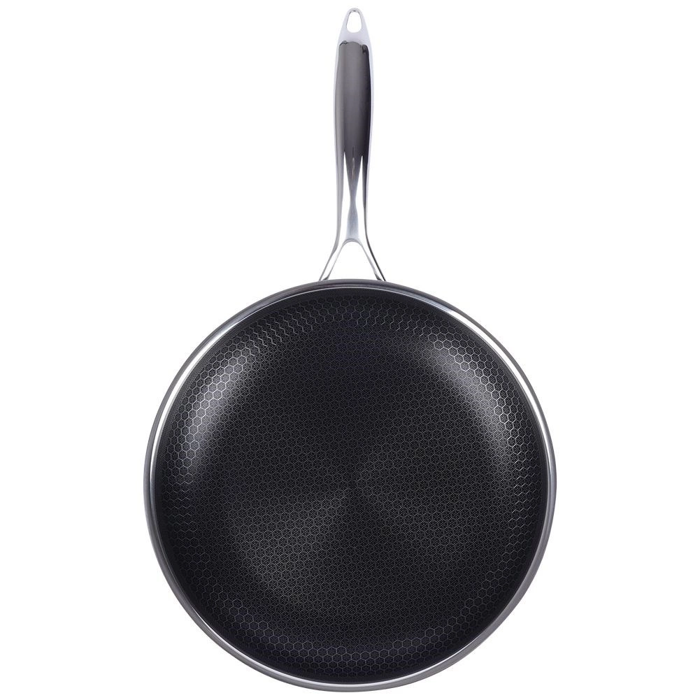 Az ergonomikus nyél biztonságos fogást garantál, a méhsejt textúra védi a felületet és megkönnyíti az ételek elengedését. A serpenyő sokoldalú a mindennapi használatban – a szaftos steakektől és a ropogós zöldségektől a könnyű palacsintákig – és mivel sütőben 260 °C-ig használható, a rakott ételeket is könnyedén elkészíti.