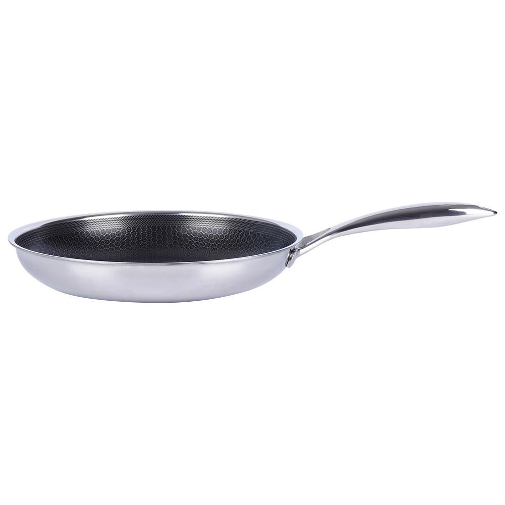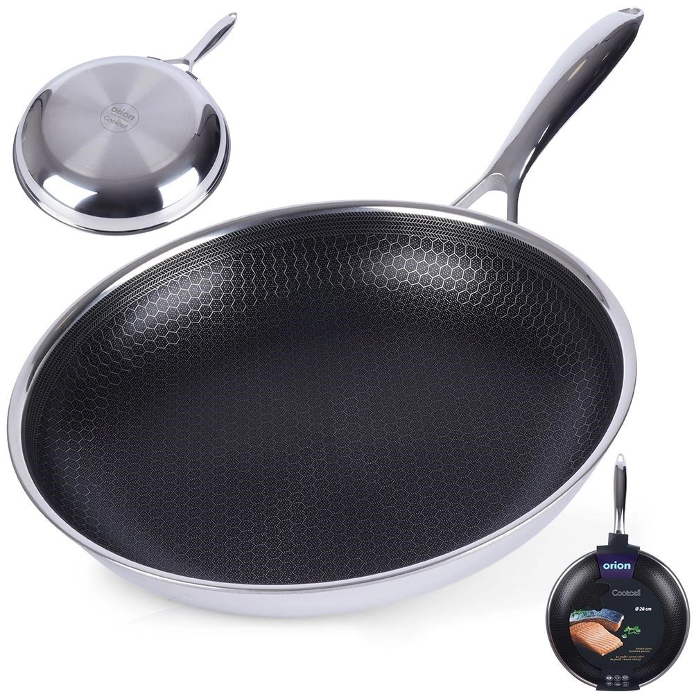 A 28 cm átmérőjű, prémium COOKCELL acél serpenyő rozsdamentes acélt és hibrid, tapadásmentes, méhsejt szerkezetű felületet kombinál a gyors és egyenletes sütés érdekében. Karcolásálló, magas hőmérsékletet bír, használható minden típusú tűzhelyen, beleértve az indukcióst is, valamint sütőben 260 °C-ig. Könnyen tisztítható, mosogatógépben mosható, és minimális zsiradékkal is főzhet.