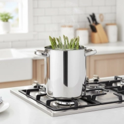 A fazék magas teste tökéletes spárga, spagetti és más hosszú élelmiszerek főzéséhez tördelés nélkül.