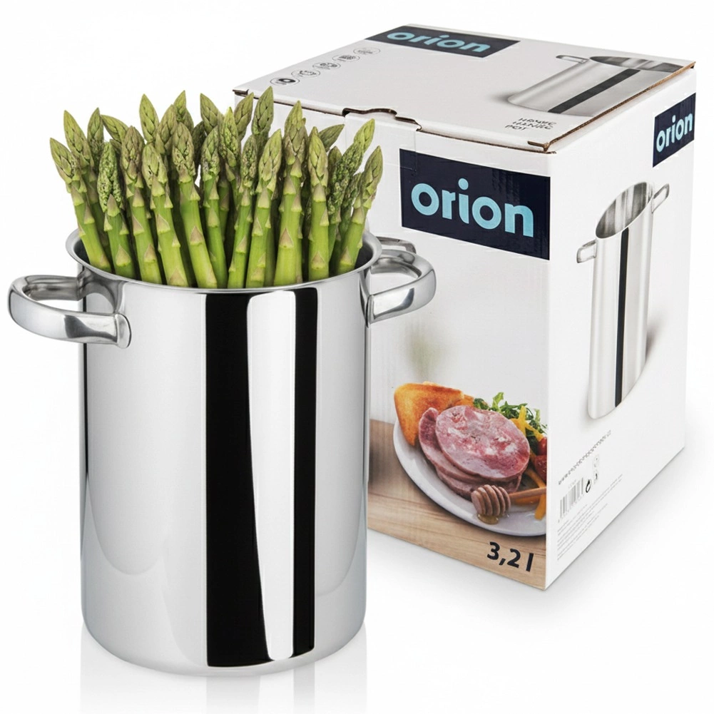 Praktikus, magas fazék minőségi 304-es rozsdamentes acélból, kényelmesen használható spárga, spagetti és egyéb hosszú élelmiszerek főzéséhez. Az elegáns, kívül fényesre polírozott és belül matt felület professzionális megjelenést és könnyű tisztítást biztosít. A masszív, szegecselt fogantyúknak köszönhetően a fazék akkor is biztonságosan kezelhető, amikor tele van.
