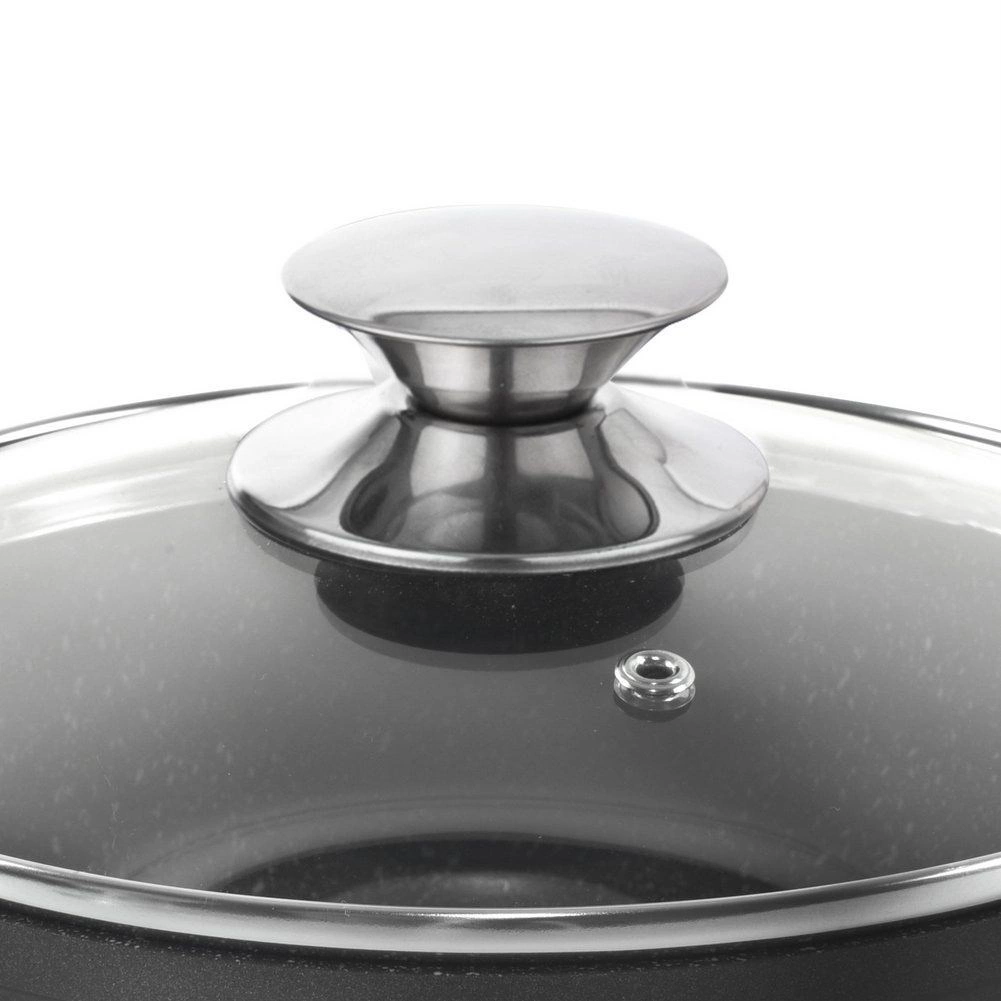 Átlátszó fedő rozsdamentes peremmel és szeleppel, amely lehetővé teszi az étel ellenőrzését és a felesleges gőz biztonságos elvezetését.