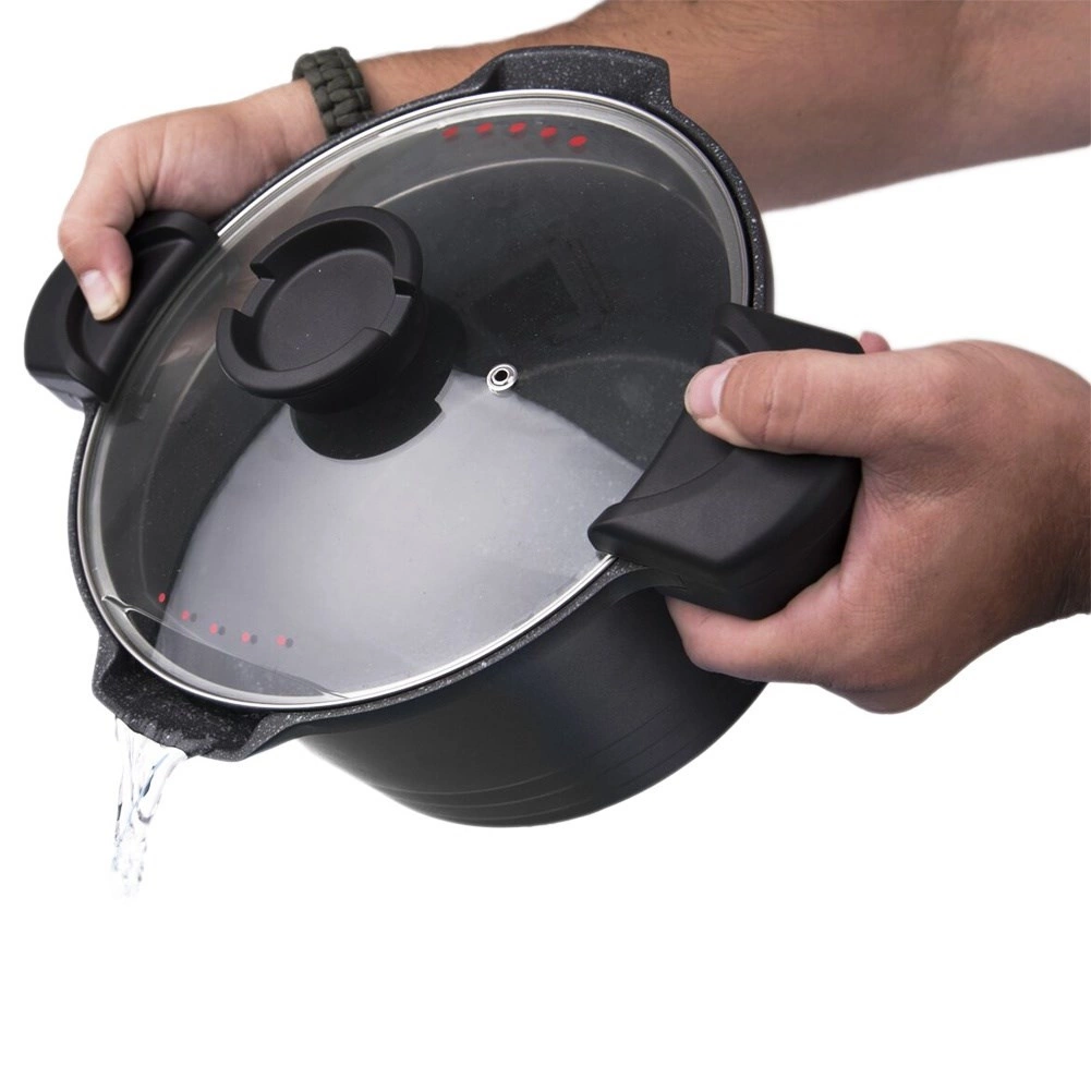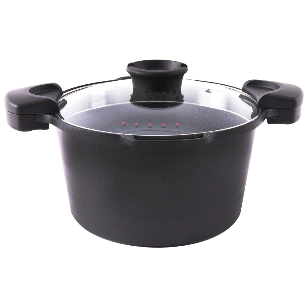 Az ORION GRANDE sorozat elegáns és tartós lábosa a modern megjelenést magas fokú funkcionalitással ötvözi. A gránit tapadásmentes réteg karcálló, és lehetővé teszi a főzést minimális zsiradékkal. A perforált peremű üvegfedő kényelmes szűrést tesz lehetővé közvetlenül a lábosból, így időt és mosogatnivalót takarít meg.