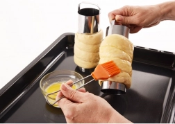 - Hagyományos forma – a formák a tésztát a megfelelő hengeres profilban tartják a szép, egyenletes végeredményért.