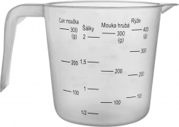 Praktikus, bögrére emlékeztető konyhai mérőpohár füllel és kiöntővel a könnyű és pontos méréshez. Minőségi, egészségre ártalmatlan átlátszó műanyagból készül, és ml-ben és g-ban jelölt skálát kínál különféle alapanyagokhoz. A könnyű és tartós kialakításnak köszönhetően jól kézben tartható, egyszerűen tisztítható, ideális a mindennapi főzéshez és sütéshez.