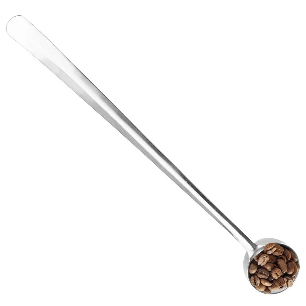 Praktikus rozsdamentes acél kávéadagoló kanál 23,5 cm hosszúsággal és 3,3 cm átmérővel, amely lehetővé teszi a pontos 6 g őrölt kávé adagolását a tökéletes csészéhez. A minőségi rozsdamentes acélnak köszönhetően tartós, könnyen tisztítható és kényelmes fogást biztosít. Ideális otthoni és professzionális használatra, hogy mindig tökéletes legyen a kávé és a víz aránya.