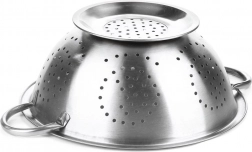 Két kényelmes oldalsó fogantyú biztosítja a biztonságos kezelést, míg a megemelt talp stabilan tartja a szűrőt a mosogatóban és a munkalapon is. A sűrű perforáció gyors vízelvezetést tesz lehetővé, így az élelmiszerek nem állnak vízben.