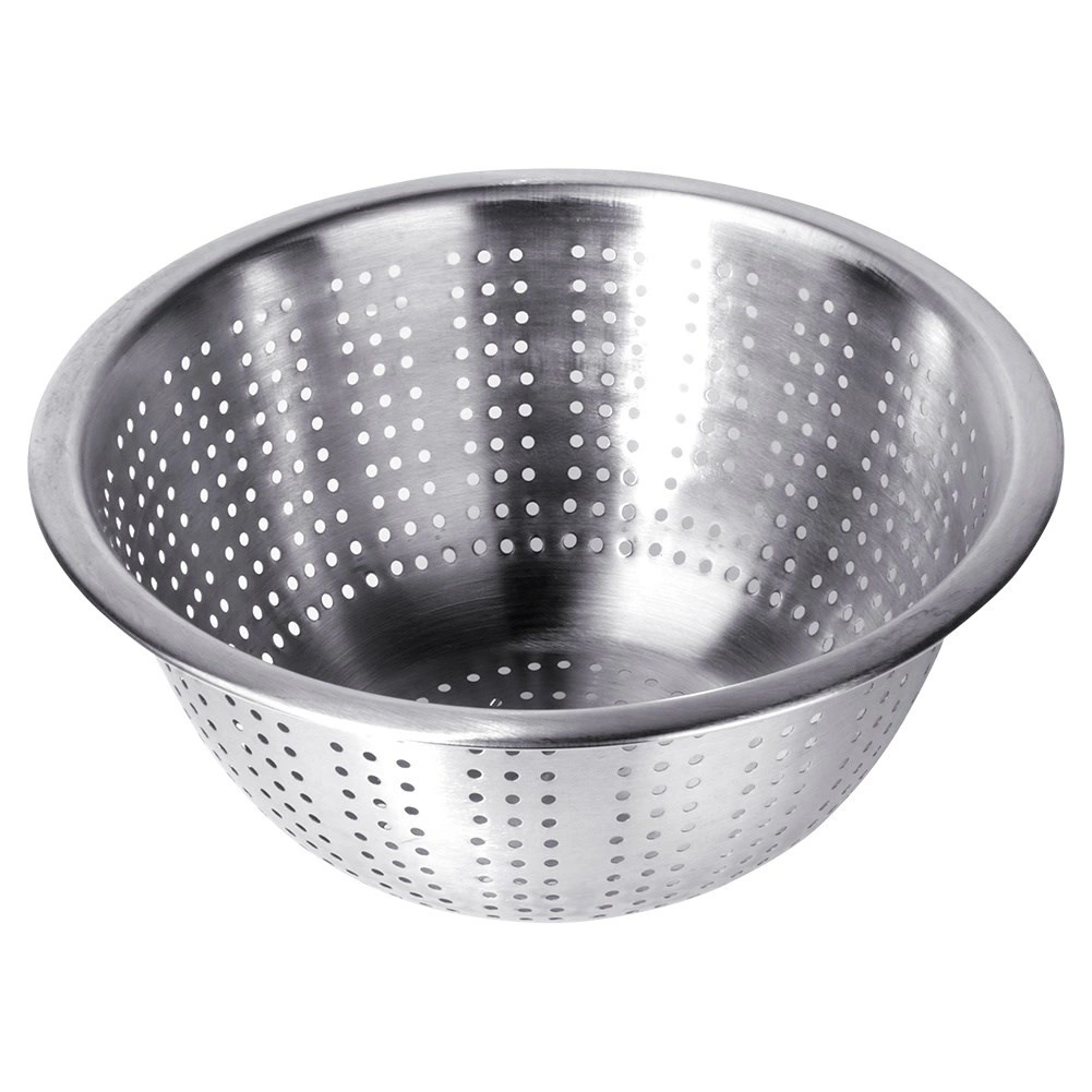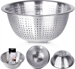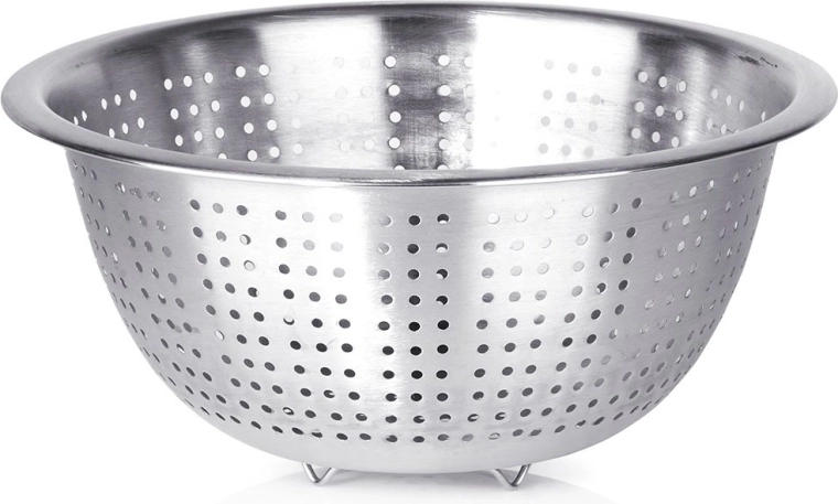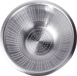 Praktikus, klasszikus kerek formájú szűrő, amely minden háztartásban megállja a helyét. A tartós rozsdamentes acélnak köszönhetően higiénikus, egészségre ártalmatlan és ízsemleges. Az egyenletesen elhelyezett perforációk felgyorsítják a víz elvezetését, míg a megerősített perem és a lábak stabilitást biztosítanak a munkalapon vagy a mosogatón.