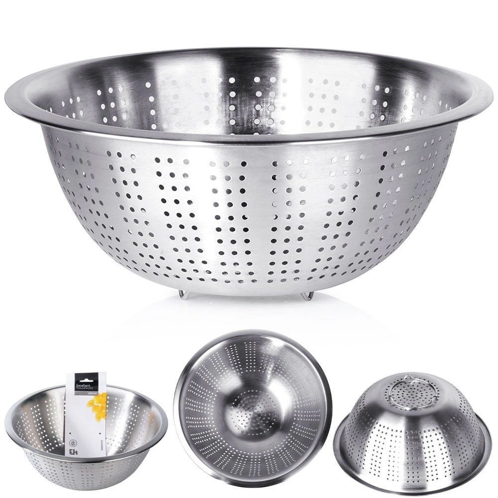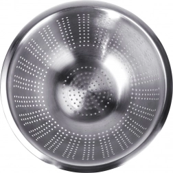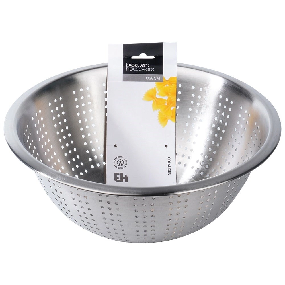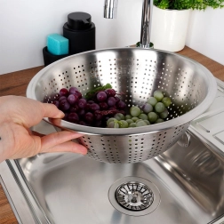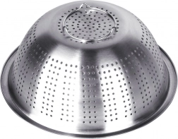 Praktikus, 28 cm átmérőjű rozsdamentes szűrő mély tálrésszel és megemelt peremmel a kényelmes hordozáshoz. Ideális gyümölcs és zöldség mosásához, valamint tészta vagy rizs leszűréséhez. A stabil lábaknak köszönhetően szilárdan áll a konyhapulton és a mosogatóban is, a tartós rozsdamentes acél pedig hosszú élettartamot és könnyű tisztítást garantál.