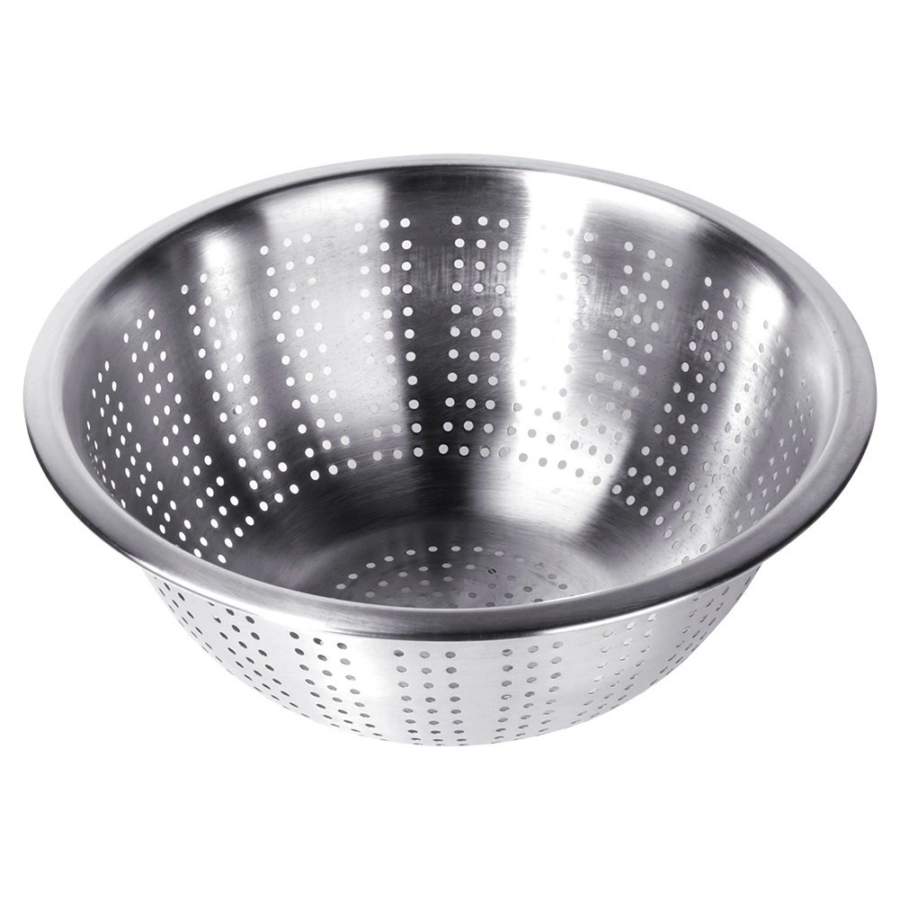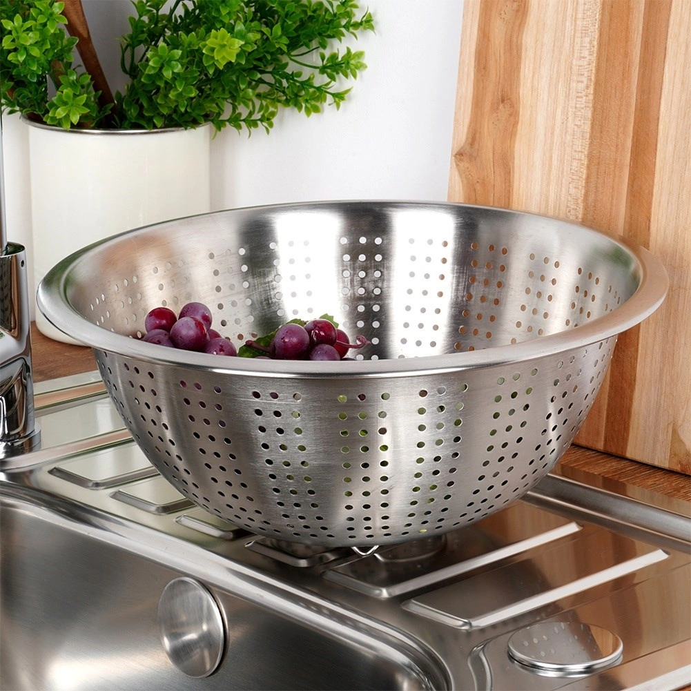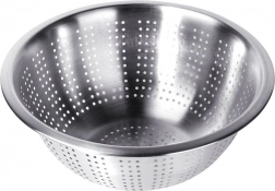 A 28 cm-es, univerzális méretű rozsdamentes acél szűrő megbízható segítőtárs lesz minden konyhában. A szélesebb perem megkönnyíti a fogást és a fazékra vagy a mosogatóba helyezést, míg az apró perforációk gyors és egyenletes vízelvezetést biztosítanak.