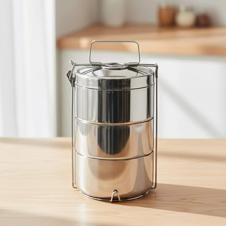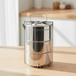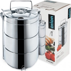 Praktikus, háromszintes rozsdamentes acél ételhordó 3×900 ml űrtartalommal, amely vákuumos szigetelésének köszönhetően tovább melegen vagy hidegen tartja az ételeket. Masszív rozsdamentes kivitel, biztonságos oldalsó csatok és kényelmes lehajtható fogantyú a könnyű és biztonságos szállításhoz. Ideális munkába, kirándulásokra, kempingezéshez és piknikhez.