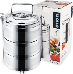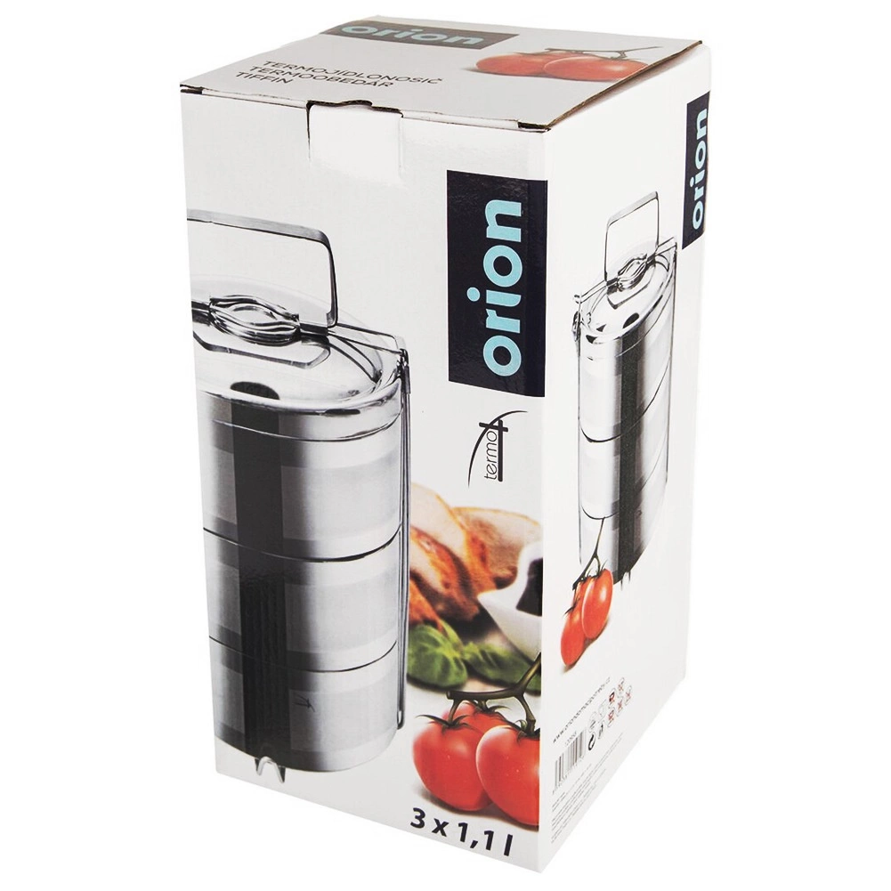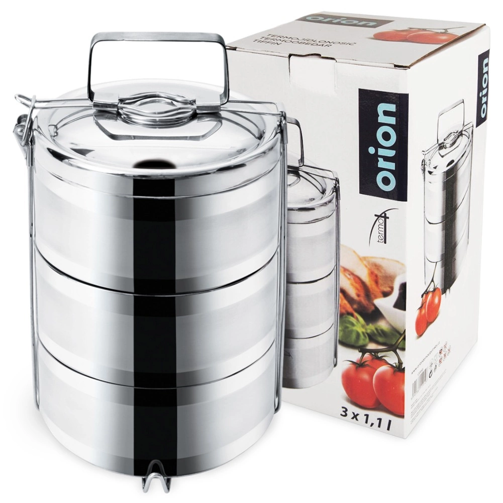 Praktikus, 3 szintes rozsdamentes acél termosz ételhordó az ételek biztonságos szállításához. Három különálló, egyenként 1,1 l űrtartalmú edény a külön tálalásért, a masszív keret fogantyúval a kényelmes hordozásért, a dupla fal vákuumszigeteléssel pedig tovább megtartja a hőt. Tartós kivitel, könnyű tisztítás, ideális munkába, kirándulásokra és piknikekre.