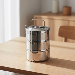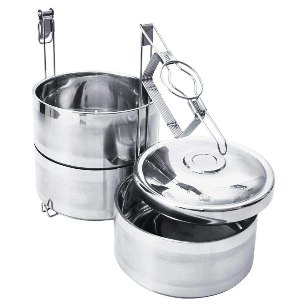 Élvezze a meleg vagy hideg ételeket bárhol útközben a három rozsdamentes acél edénnyel ellátott ételhordónak köszönhetően, amelyeket az oldalsó keret biztonságosan egy egységgé rögzít. Minden edény 1,1 l űrtartalmú, így könnyedén különítheti el a levest, a főfogást és a desszertet.