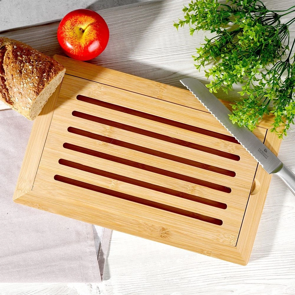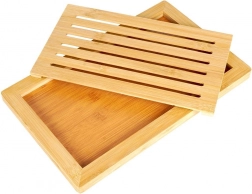 Elegáns, természetes bambuszból készült pékvágó deszka, amely tisztaságot és rendet visz a konyhába. A kivehető felső rács lehetővé teszi, hogy a morzsák áthulljanak az alsó tálcába, így a kenyér megszelése után elég kiönteni a morzsát, és már kész is a rend. A bambusz könnyű, erős és nedvességálló fa, nem veszi át a szagokat, és gyorsan szárad.