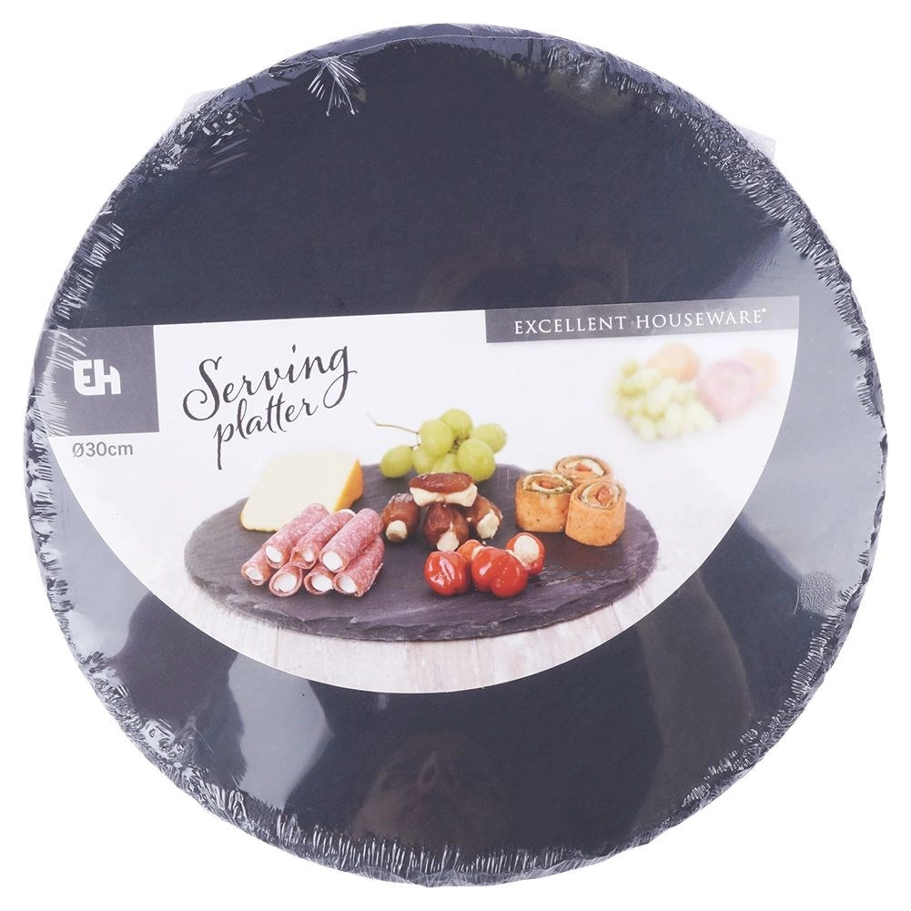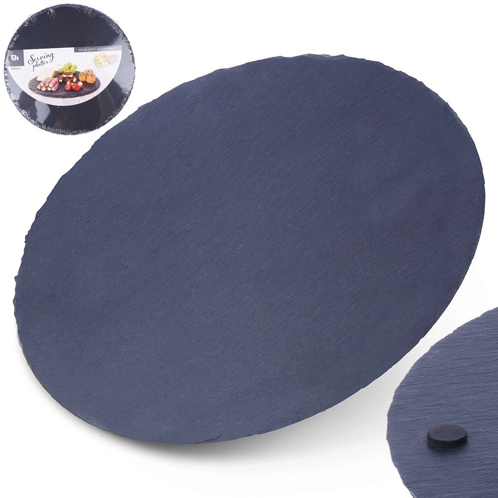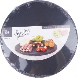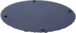 Elegáns, 30 cm átmérőjű, természetes palából készült kerek tálca stílusos tálaláshoz. Rusztikus megjelenést, masszív kő felületet és sokoldalú felhasználást kínál sajtokhoz, előételekhez, desszertekhez és forró ételekhez is. A csúszásgátló tappancsoknak köszönhetően stabil és biztonságos bármelyik asztalon.