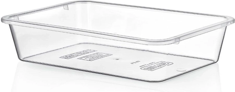 Alacsony profilja és kényelmes peremei révén könnyen kezelhető, egyszerűen tisztítható és mosogatógépben mosható. Nemcsak a hűtőben, hanem a kamrában, konyhaszekrényben vagy akár irodaszerekhez is kiváló.