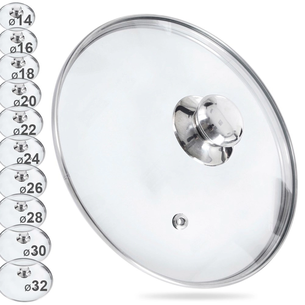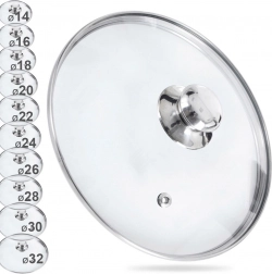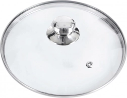 Univerzális, 28 cm átmérőjű üveg fedő erős rozsdamentes acél peremmel, kényelmes fém fogantyúval és gőzszeleppel. A hőálló üveg lehetővé teszi a főzés folyamatos megfigyelését emelés nélkül, az enyhén domború forma támogatja a forró levegő keringését, a pontos illeszkedés pedig csökkenti a gőzveszteséget és a fröcskölést. Alkalmas lábasokhoz, serpenyőkhöz és kisebb fazekakhoz.