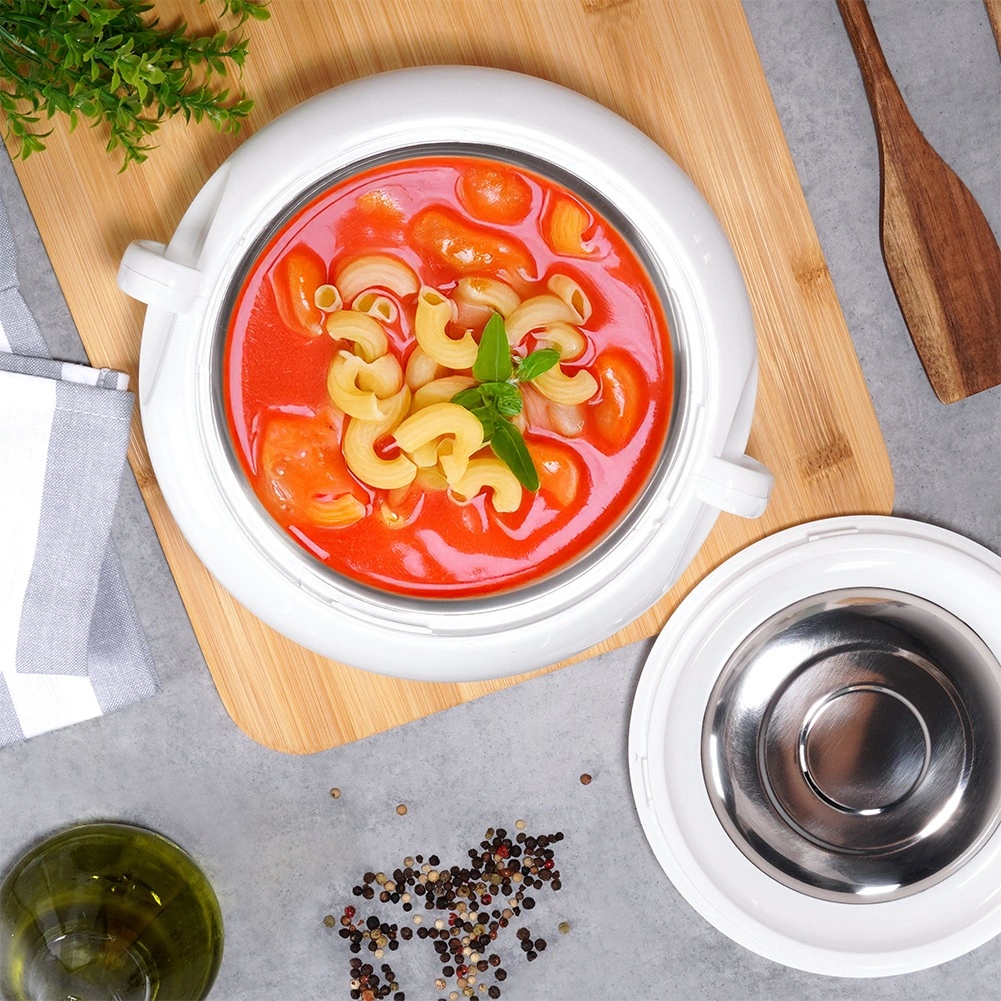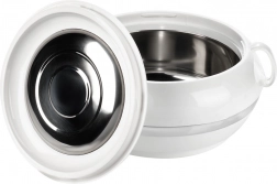 Tartsa meg az ételek hőmérsékletét bonyolult melegítés nélkül. Ez a szigetelt tálaló tál remek választás családi ebédekre, grillezéshez és kerti partikra. A belső rozsdamentes rész segít akár 2 órán át melegen tartani az ételt, nyáron pedig megóvja a fagyit és a hideg desszerteket a gyors olvadástól. A dekoros, elegáns fedél és a letisztult fehér dizájn minden konyhába illik.