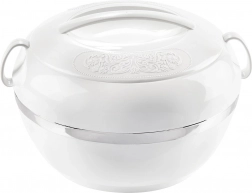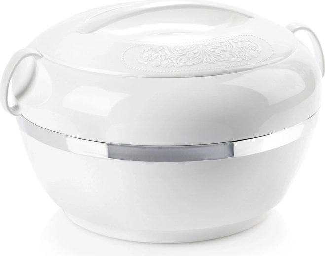 Élvezze a stresszmentes tálalást – a Deluxe termos tál megbízhatóan tartja ételei hőmérsékletét családi ebédeken, ünnepségeken és piknikeken. A tartós műanyag és a rozsdamentes betét kombinációja kiváló hőszigetelő tulajdonságokat és egyben egyszerű tisztítást kínál.
