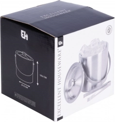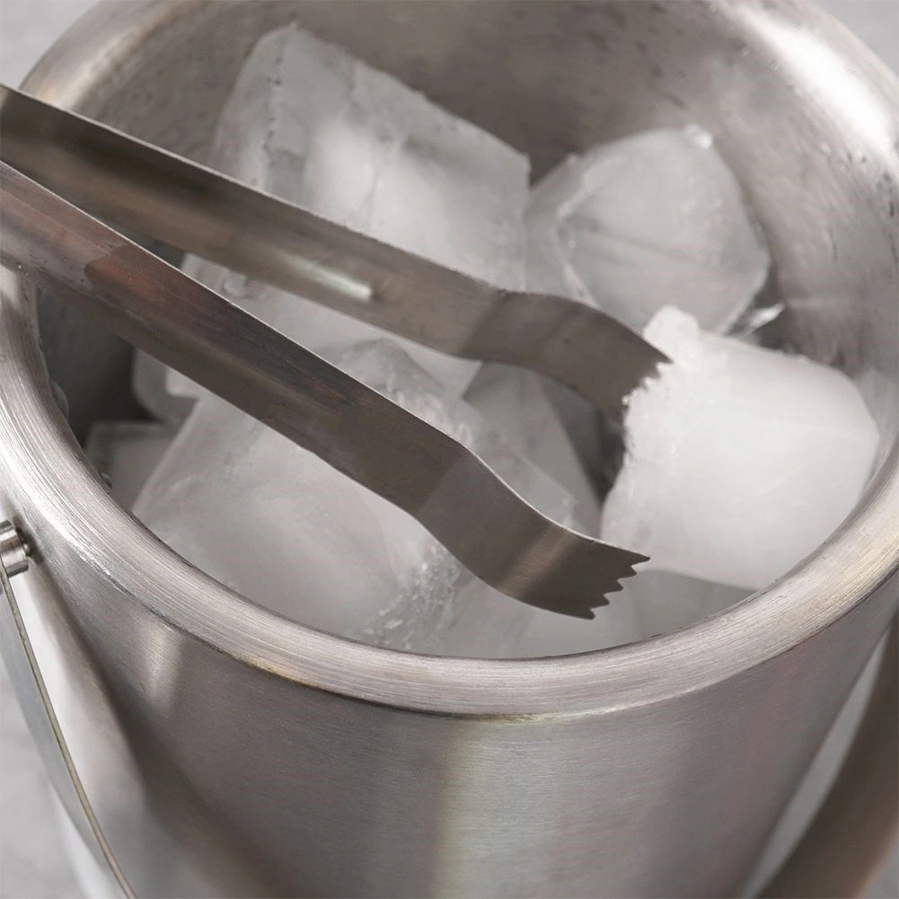 A szettet rozsdamentes acél csipesz egészíti ki recézett pofákkal, a jég egyszerű és higiénikus adagolásához italokba. A vödör kiváló borhoz, pezsgőhöz, koktélokhoz és üdítőkhöz – otthon, szállodában és étteremben.