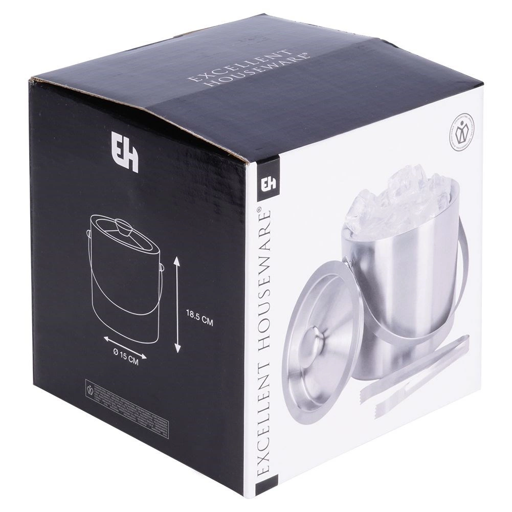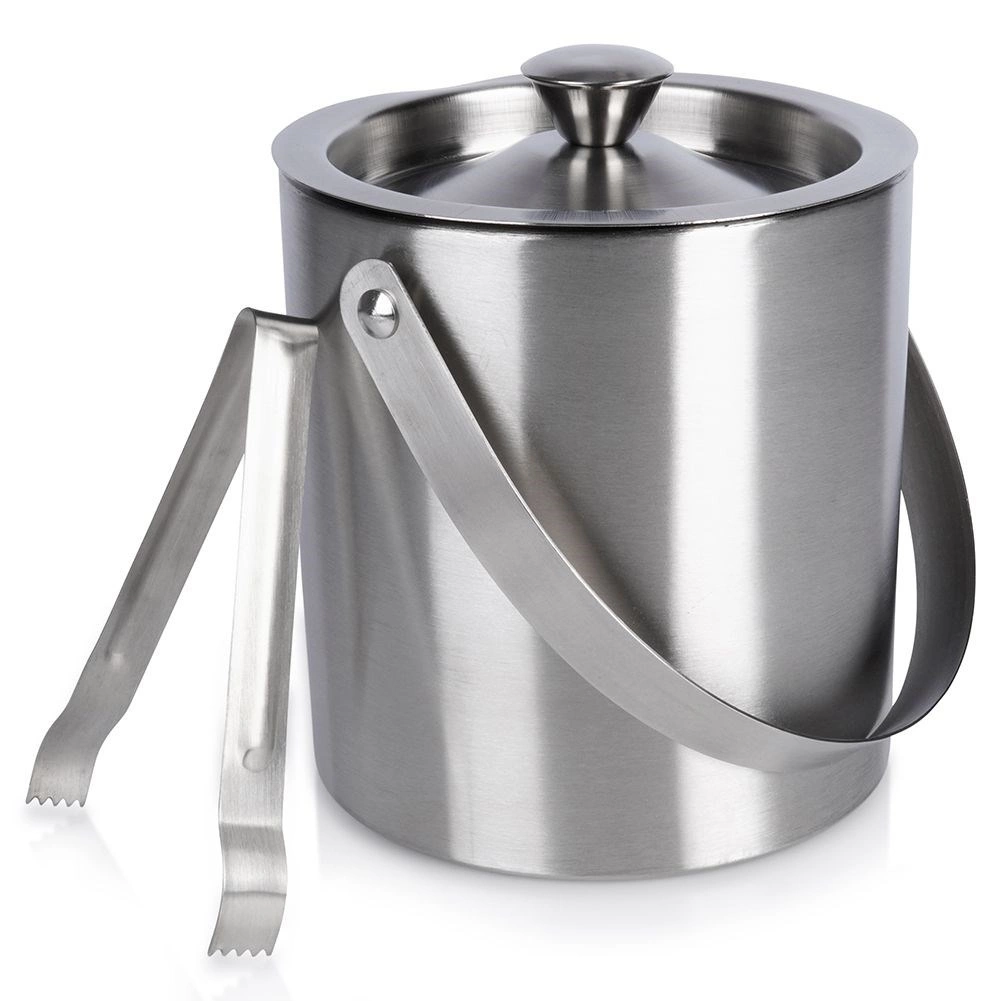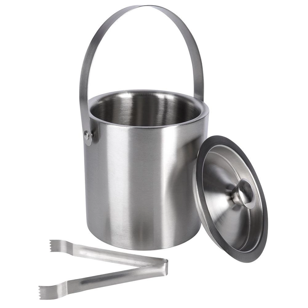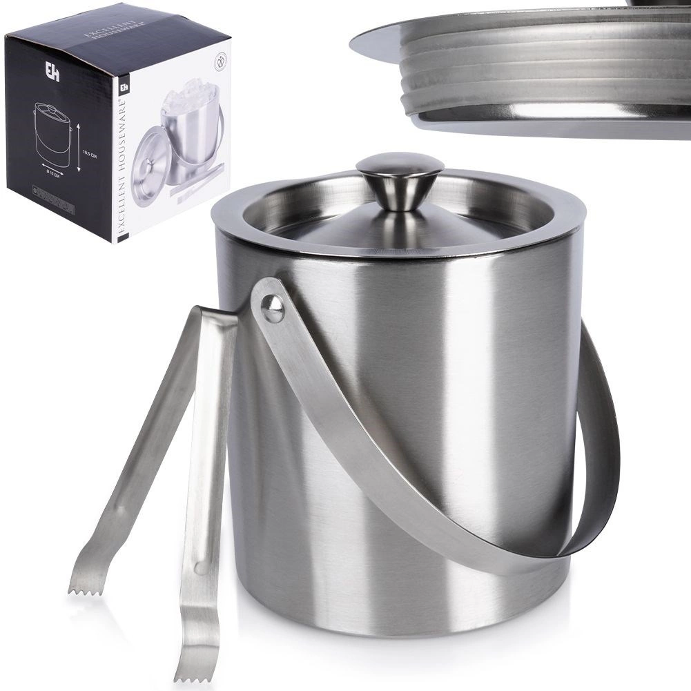 Stílusos rozsdamentes acél jégvödör fedővel, lehajtható fogantyúval és csipesszel, amely a dupla falú kialakításnak köszönhetően tovább tartja hidegen a jeget. Praktikus 1,7 l kapacitás, 15 × 16 cm méret és 14 cm-es csipesz a higiénikus jégszervírozáshoz. Ideális bárba, buliba és vendéglátásba.