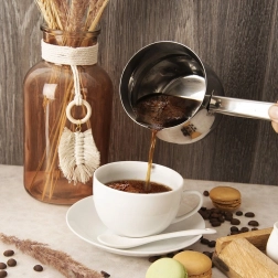 Nemcsak illatos kávé készítéséhez ideális, hanem tej vagy kisebb mennyiségű szószok melegítéséhez is. Az ergonomikus fogantyú kényelmes fogást ad, így a kezelés biztonságos és kényelmes. A cezve gáz-, elektromos és üvegkerámia főzőlapokkal kompatibilis, és mosogatógépben mosható.