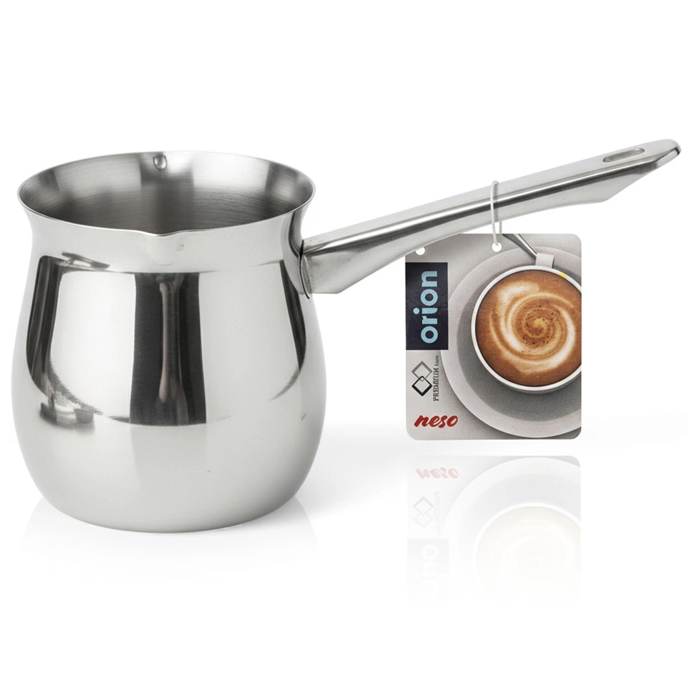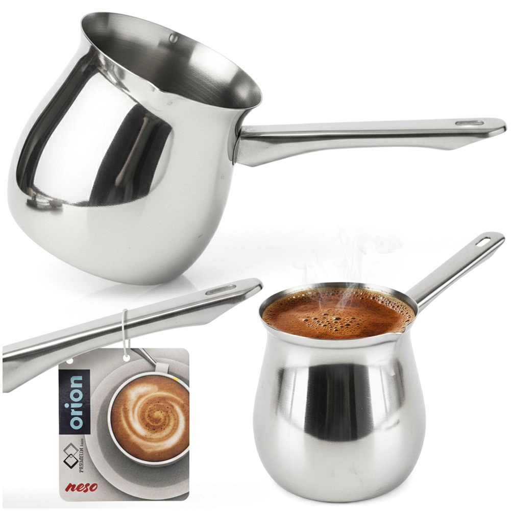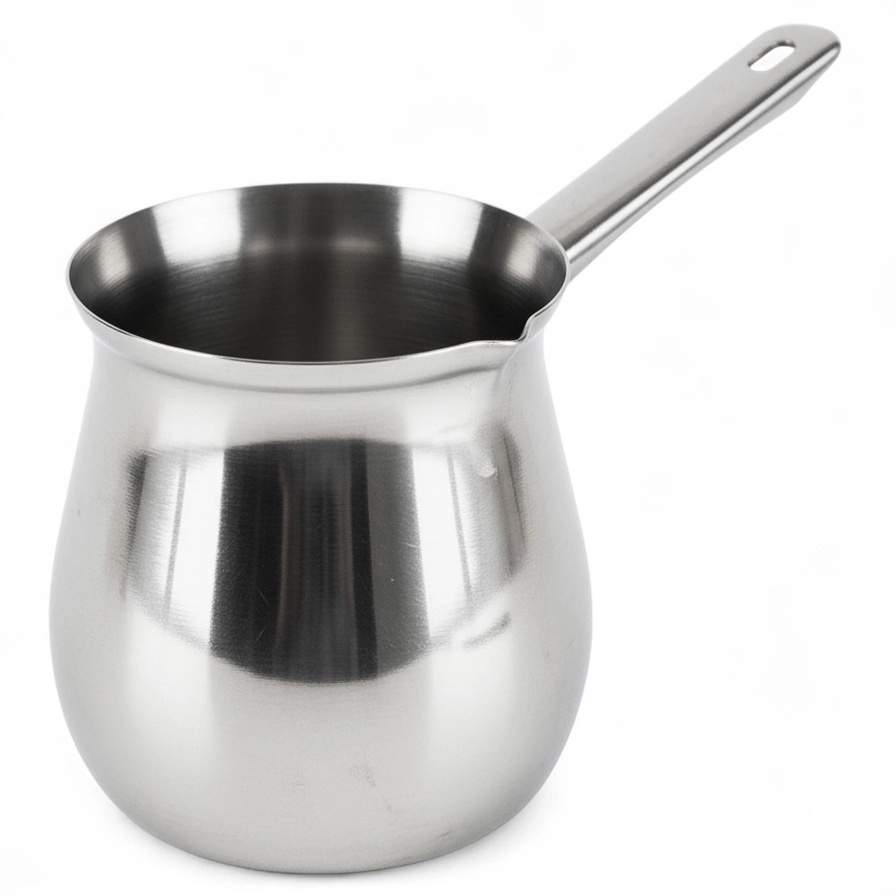 600 ml-es rozsdamentes acél cezve (ibrik) török kávé készítéséhez és tej melegítéséhez. Ergonomikus nyéllel, praktikus kiöntőcsőrrel a pontos öntéshez és speciális túlcsordulásgátló peremmel rendelkezik. Gáz-, elektromos és üvegkerámia főzőlapon is használható, és mosogatógépben mosható. Magas minőségű, élelmiszerbiztonságos rozsdamentes acélból készült.
