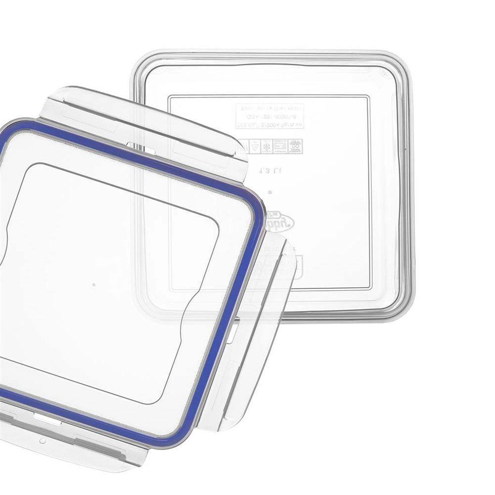 A szilikon tömítésű fedél és a négy klip megakadályozza a folyadékok szivárgását, és tovább frissen tartja az ételeket.