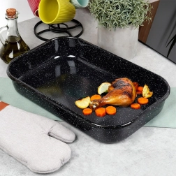 Tökéletes csirke, sertéshús, hal, valamint rakott zöldség, házi pizza vagy piték készítéséhez. A sima máznak köszönhetően az étel kevésbé tapad le, a tepsi pedig könnyen tisztítható, mosogatógépben is.