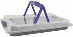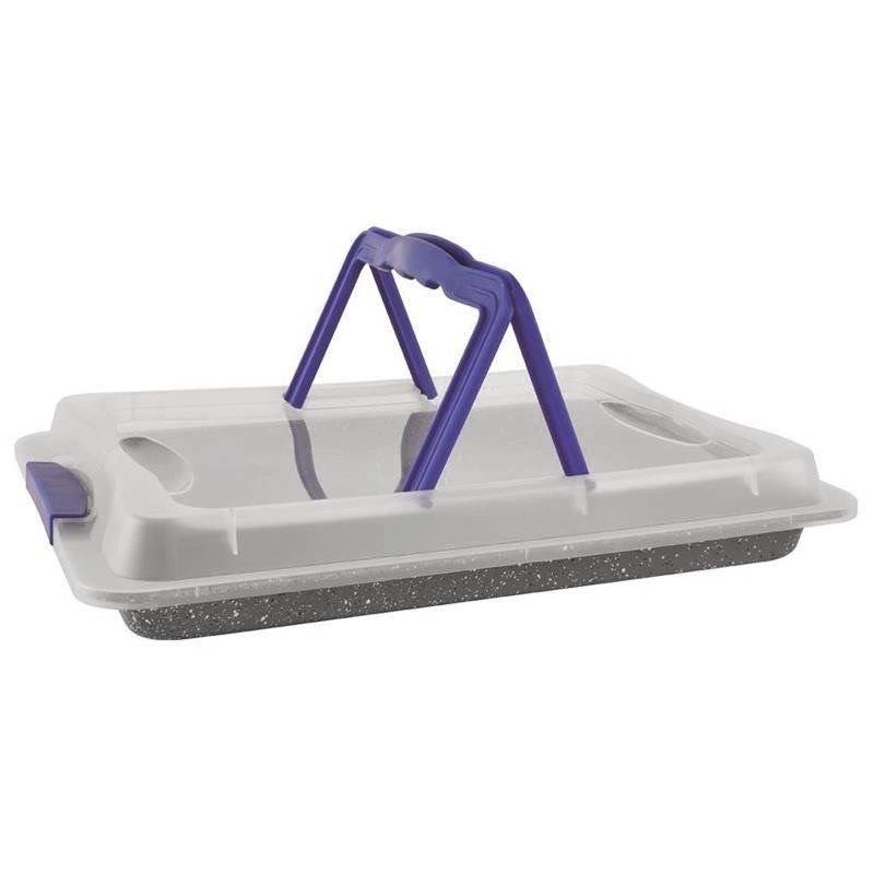 Praktikus, téglalap alakú sütőforma fedővel, amely egyesíti a sütést, a tárolást és a szállítást egyben. A tapadásmentes gránit felületnek köszönhetően a tészták könnyen kifordíthatók, a összecsukható fogantyúkkal ellátott fedő pedig biztonságban tartja a desszerteket útközben, míg a minőségi szénacél egyenletes átsülést biztosít egészen 230 °C-ig.