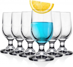 Hat darab talpas feles pohár minimalista, időtálló stílusban. Minden pohár 20 ml űrtartalmú, kompakt méretű, így kényelmesen tálalhatók a likőrök, a vodka és más párlatok. A kristálytiszta üveg szépen kiemeli az ital színét, és elegáns megjelenést ad minden terített asztalon.