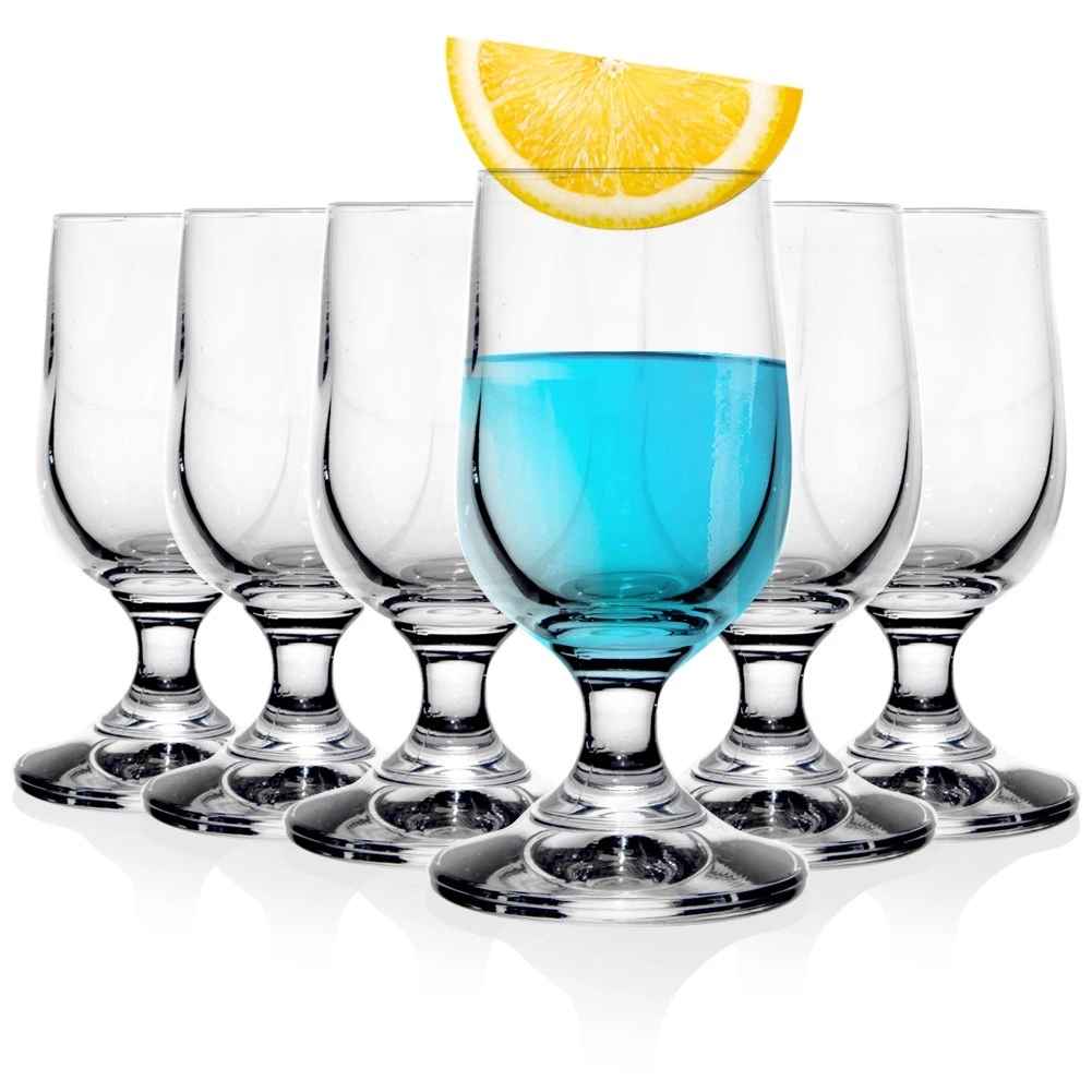 Elegáns, hat darabos talpas feles pohárkészlet 20 ml űrtartalommal, ideális tömény italok szervírozásához. Minőségi üvegből készült, strapabíró, stabil és könnyen tisztítható – mosogatógépben mosható. Időtálló dizájnjának és átlátszó kivitelének köszönhetően remekül illik bármelyik terítékhez, és tökéletes választás ünnepségekre, bulikra és családi összejövetelekre.