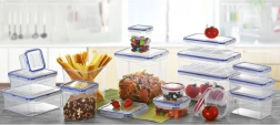 A BPA-mentes, átlátszó műanyag tartós és könnyen tisztítható. A dobozok egymásra rakhatók a hűtőben vagy a kamrában történő átlátható rendszerezéshez.