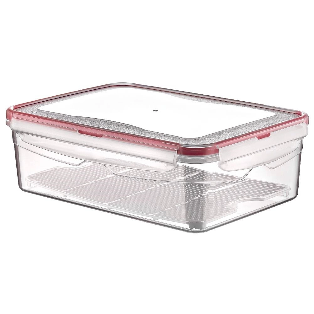 A kivehető rács biztosítja a levegő keringését és elemelést az aljtól, így nem gyűlik össze a nedvesség, az alapanyagok pedig tovább maradnak frissek. A négy erős klipszel és szilikon tömítéssel ellátott fedél gondoskodik a maximális zárásról és a nedvesség, illetve szagok elleni védelemről.