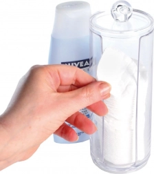 A felső nyílás praktikus fedéllel lehetővé teszi egy teljes csomag vattakorong gyors, rendetlenség nélküli pótlását.