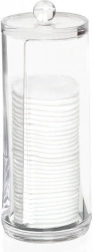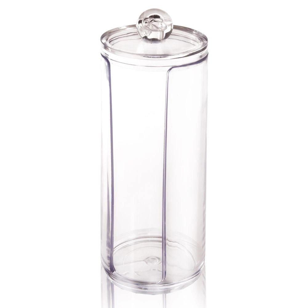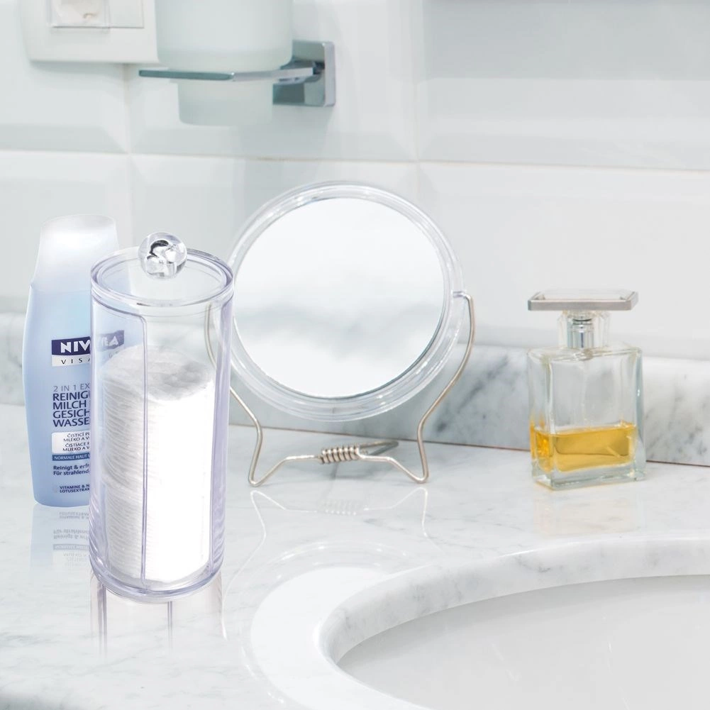 Rendezd a vattakorongokat áttekinthetően és higiénikusan. Az átlátszó test azonnali készletellenőrzést tesz lehetővé, a fedél védi a tartalmat a portól és a nedvességtől. A kompakt 7,5 × 20 cm-es méret helytakarékos a mosdón és a pipereasztalon is.