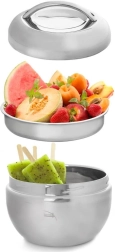 A külső termos tál, a kivehető belső tál és a fogantyús fedél együtt tovább tartják melegen vagy hidegen az ételeket – ideális levesekhez, köretekhez és desszertekhez.