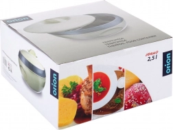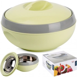 Praktikus ételhordó termosztál 2,5 l (hasznos 2,2 l) kapacitással, amely akár 2 órán át melegen tartja az ételeket a rozsdamentes acél betétnek köszönhetően. Könnyű kialakítás, egyszerű csavarós zárás és kényelmes fogantyú a hordozáshoz. Ideális meleg ételek tálalásához és fagylalt tárolásához nyáron is.