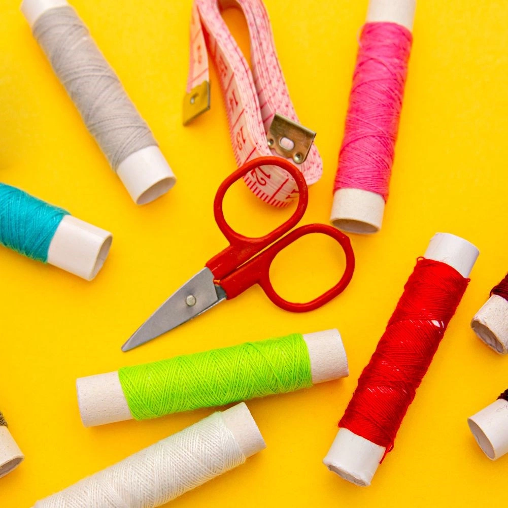 - Különböző színű cérnák, tűk, kis olló, centiméter, gombok, gyűszű, cérnabefűző, biztosítótűk, tűpárna