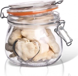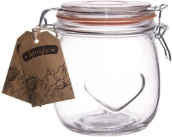 Stílusos és praktikus klipzáras üveg tároló, kiváló választás mindennapi élelmiszer-tároláshoz és házi finomságok készítéséhez. A patentos zár és gumitömítés révén tökéletesen légmentes, megóvja a tartalmat a levegőtől és a nedvességtől. A szívecske domborítású, vastag üveg elegáns megjelenést kölcsönöz, így ajándékcsomagolásnak is ideális házi lekvárokhoz vagy mézhez.