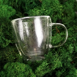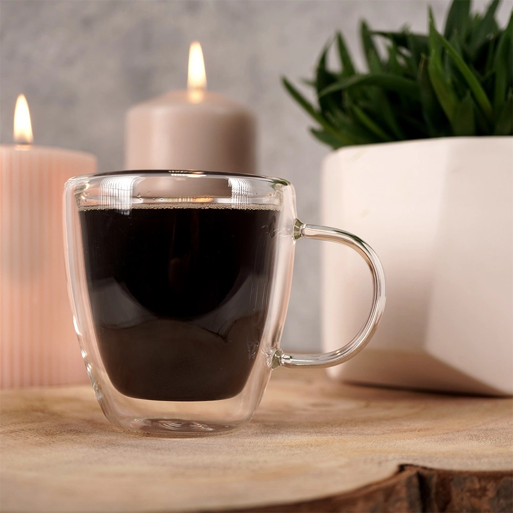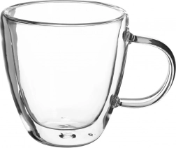 Elegáns, 180 ml-es, kétszerezett falú hőszigetelő pohár, amely hosszabb ideig ideális hőmérsékleten tartja italait. A boroszilikát üvegnek köszönhetően könnyű, hőálló -10 °C-tól +210 °C-ig, és kellemes tapintású. A modern design szépen kiemeli a réteges lattét és a teát, míg a praktikus fül kényelmes fogást biztosít.