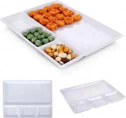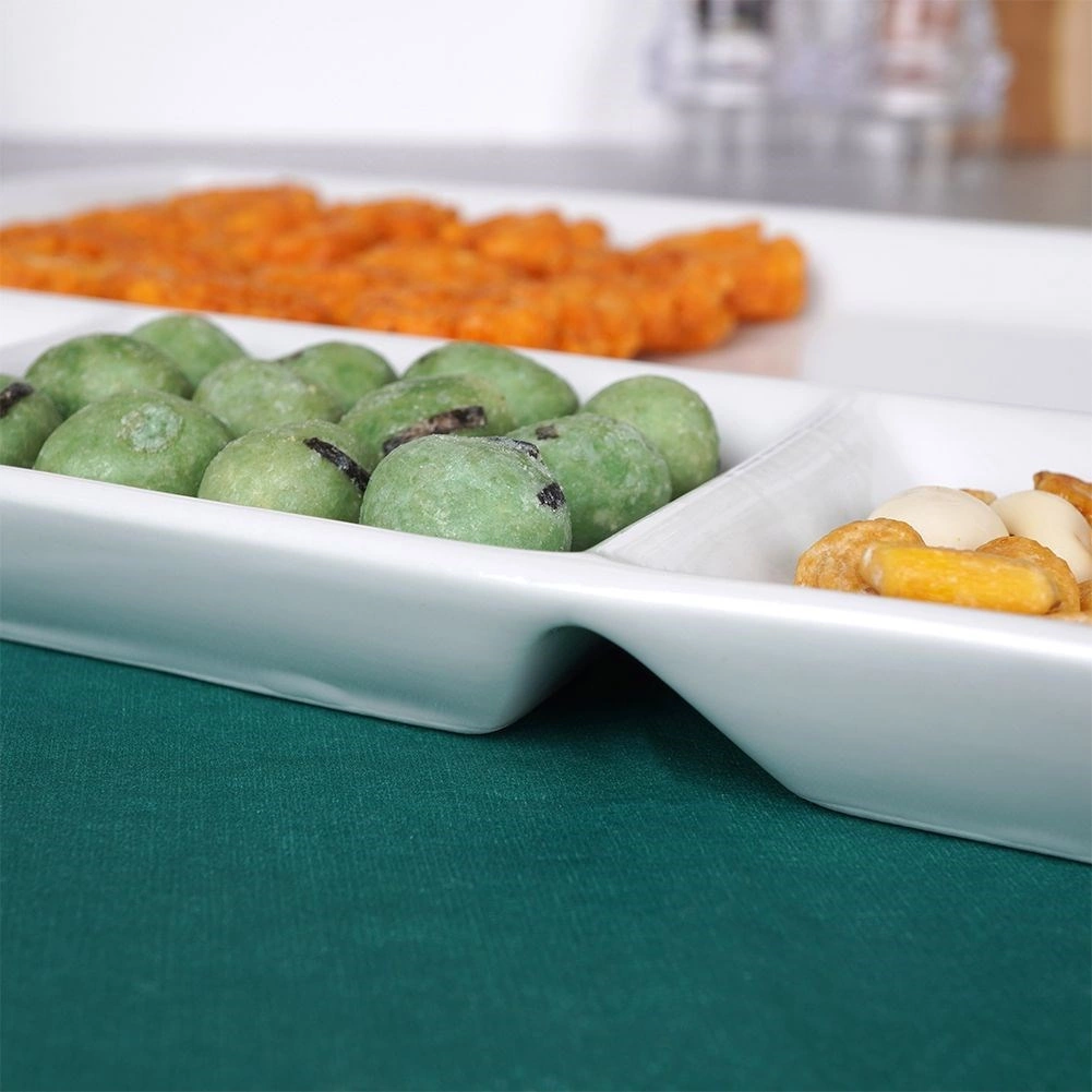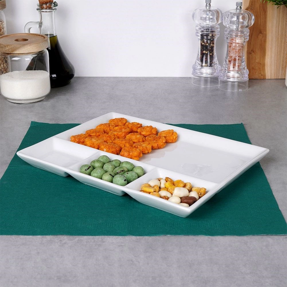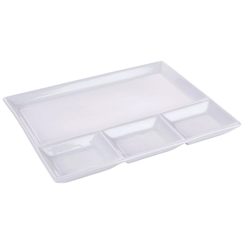 Sokoldalú, osztott tányér minőségi fehér porcelánból, amely letisztult, modern megjelenést kölcsönöz az asztalnak. A négy praktikus rekesz lehetővé teszi a külön tálalást, így az ízek nem keverednek, és minden alapanyag érvényesül.