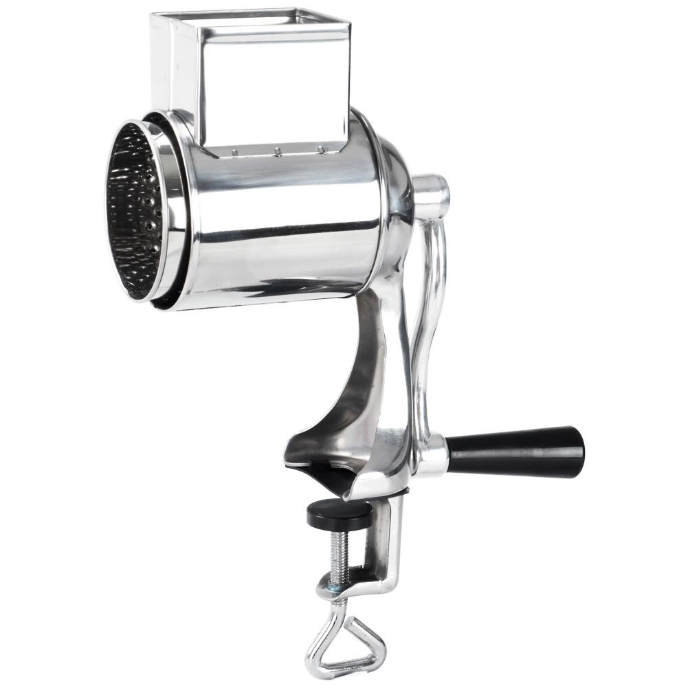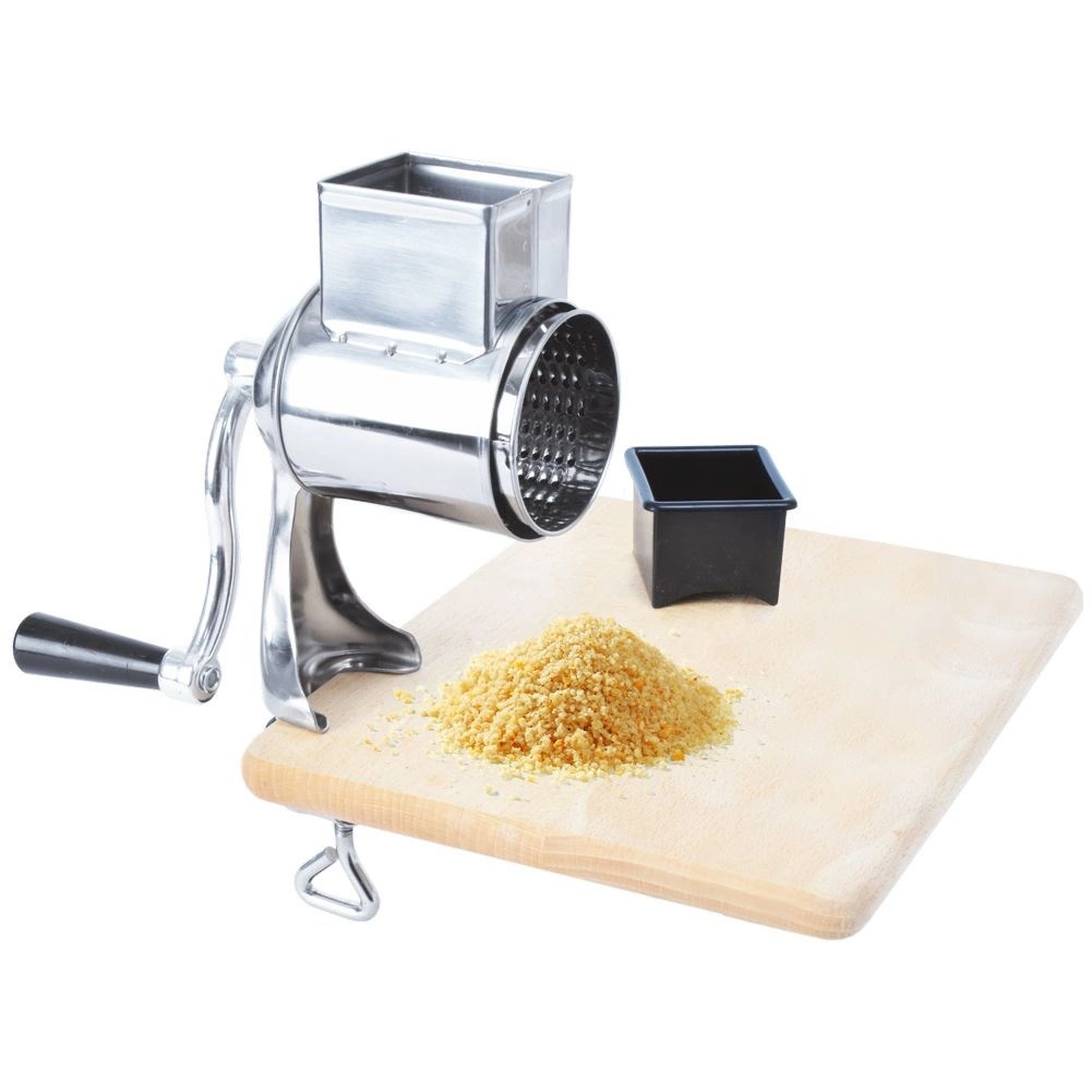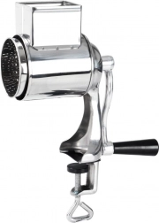 A praktikus kézi forgóreszelő csavaros asztali rögzítéssel (max. kb. 3,5 cm vastagságig) kiváló stabilitást nyújt munka közben. A rozsdamentes acél ház tartós műanyaggal és a kényelmes kar egyenletes reszelést tesz lehetővé nagy erő nélkül. A kb. 6 × 5 cm-es tartály könnyedén befogadja az alapanyagokat a folyamatos adagoláshoz.
